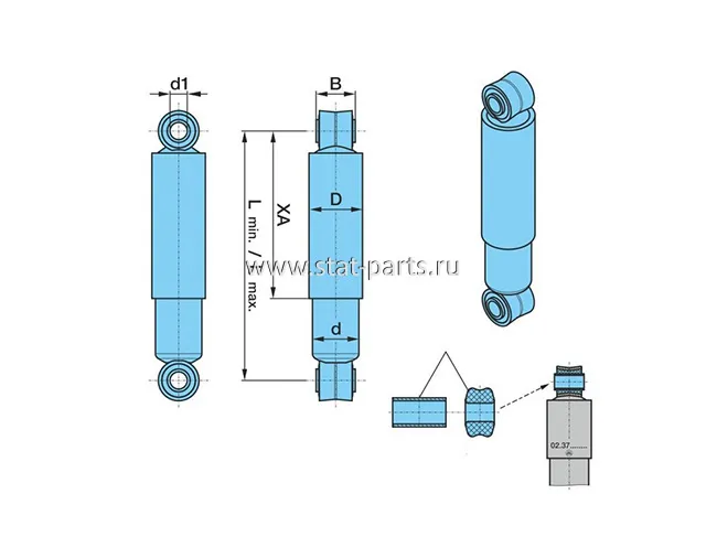 02.3722.83.02 АМОРТИЗАТОР ПОДВЕСКИ ПРИЦЕПА L=326/496 D=24/75