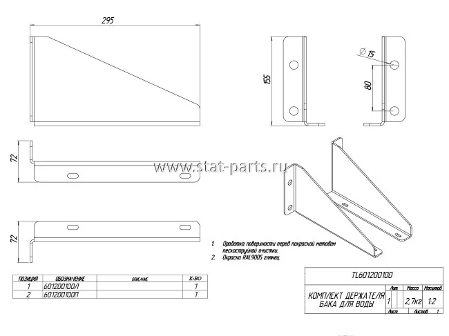 TL601200100 КОМПЛЕКТ ДЕРЖАТЕЛЯ БАКА ДЛЯ ВОДЫ