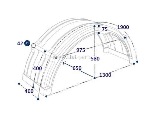 DK4175 КРЫЛО АРОЧНОЕ С БЕЛОЙ ОКАНТОВКОЙ НА ПОЛУПРИЦЕП 460X1900X650