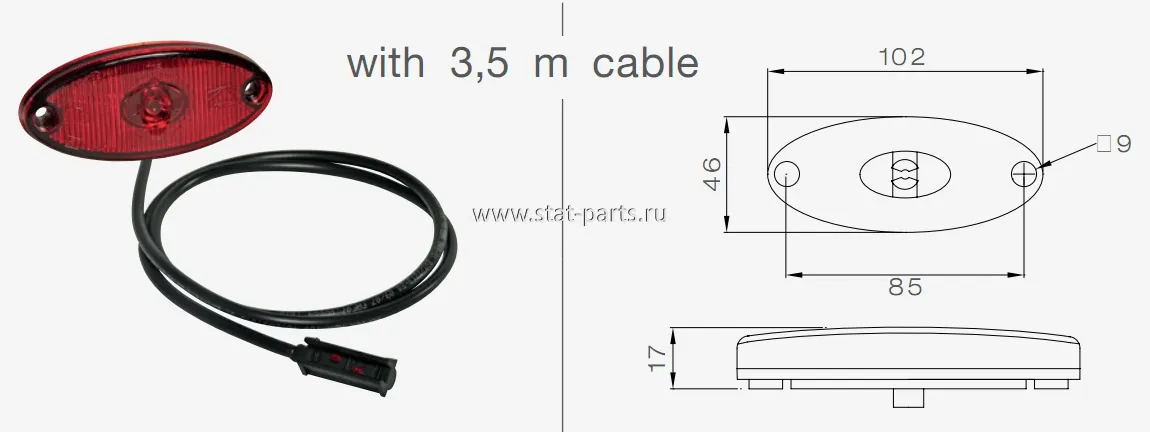 31-6404-124 ГАБАРИТНЫЙ ФОНАРЬ КРАСНЫЙ FLATPOINT II С КАБЕЛЕМ 3,5М