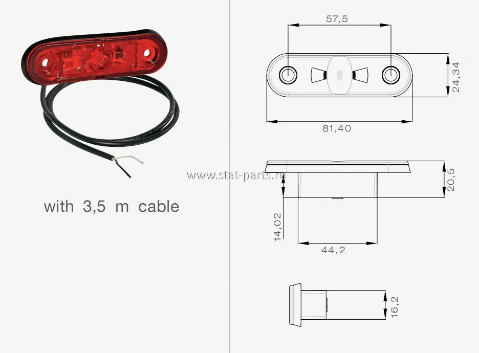 31-7200-014 ГАБАРИТНЫЙ ФОНАРЬ КРАСНЫЙ POSIPOINT II С КАБЕЛЕМ 3,5М