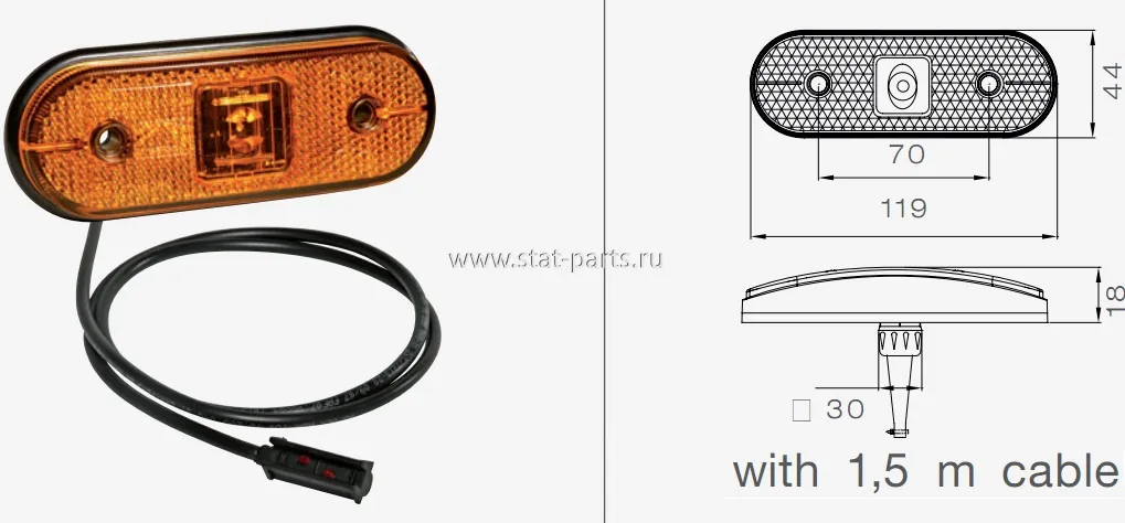 31-2004-037 ГАБАРИТНЫЙ ФОНАРЬ ОРАНЖЕВЫЙ UNIPOINT I LED С КАБЕЛЕМ 1,5М