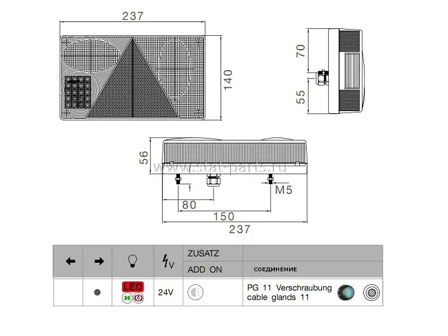 Фонарь задний правый MULTIPOINT LED, 24-5800-731 состоит из указателя поворота, фонаря заднего габаритного света, стоп-сигнала, противотуманной фары и бокового габаритного фонаря. Световое оборудование укомплектовано энергоэффективными светодиодными лампами. Ударопрочный пластиковый корпус защищает внутренние элементы устройства от механических повреждений и воздействий внешней среды. Продукция австрийского концерна Aspoeck ценится во всем мире за безупречное качество, надежность и долгий срок службы.