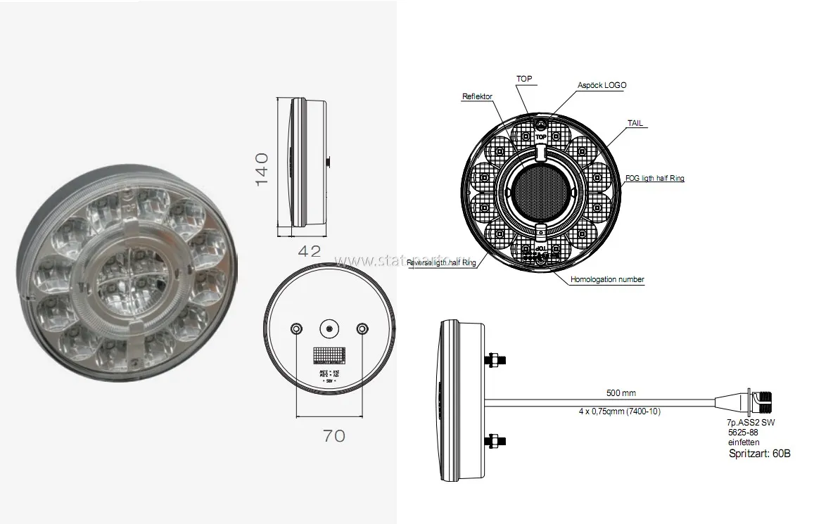 33-8107-037 ФОНАРЬ ЗАДНИЙ BRASPOINT, С КАБЕЛЕМ 0,5М ASS2