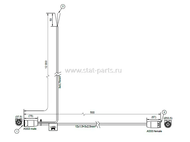 65-6187-007 КАБЕЛЬ С ДОПОЛНИТЕЛЬНЫМ ВЫХОДОМ 2 PIN EBS