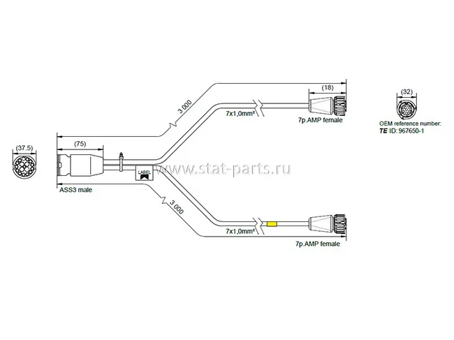 65-6250-007 КАБЕЛЬ ПИТАНИЯ ДЛЯ ЗАДНИХ ФОНАРЕЙ 17PIN ASS3 2x7PIN AMP