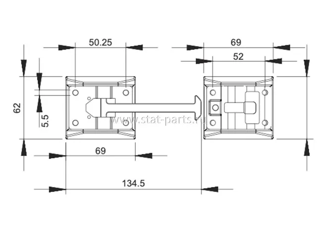 - Длина фиксатора — 134,4 мм, длина ответной части — 69 мм, ширина — 62 мм;