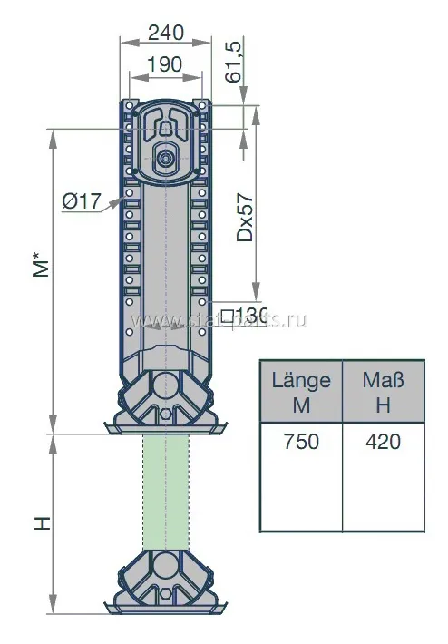 02.3710.22.01-K ОПОРНОЕ УСТРОЙСТВО M=750ММ (СТОПА S) БЕЗ РЕДУКТОРА