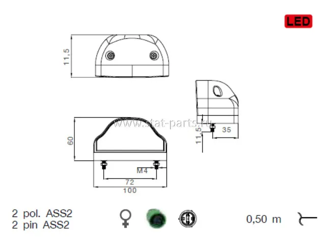 36-3607-004 ФОНАРЬ ПОДСВЕТКИ НОМЕРНОГО ЗНАКА LED С КАБЕЛЕМ 0,5М ASS2