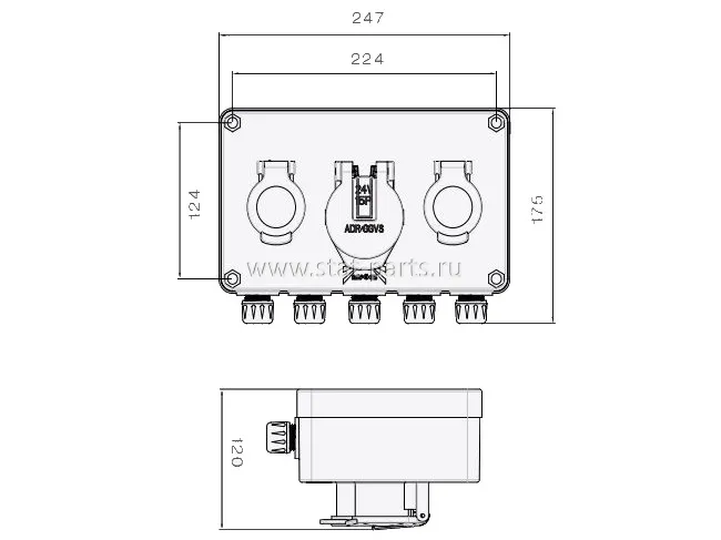 76-7002-001 РАСПАЯЧНАЯ КОРОБКА С РОЗЕТКАМИ С КАБЕЛЕМ 0,6М