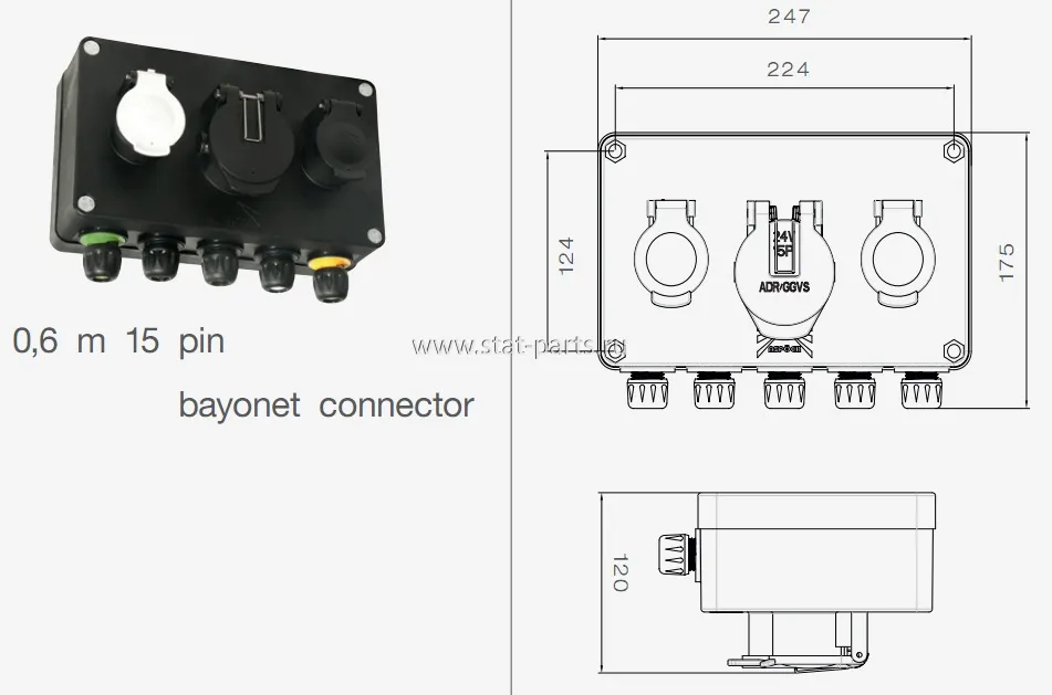 76-7002-004 РАСПАЯЧНАЯ КОРОБКА С РОЗЕТКАМИ С КАБЕЛЕМ 0,6М