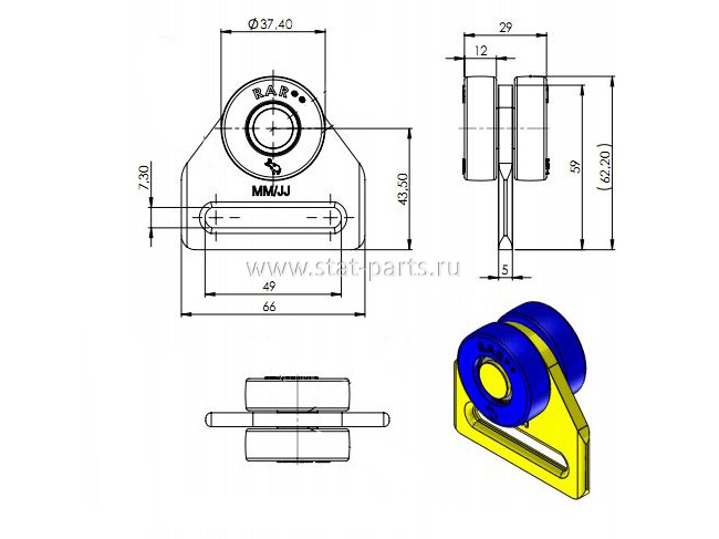 - Размер ролика: диаметр – 37,4 мм, ширина ролика – 12 мм, ширина 2-х роликов с площадкой – 29 мм;
