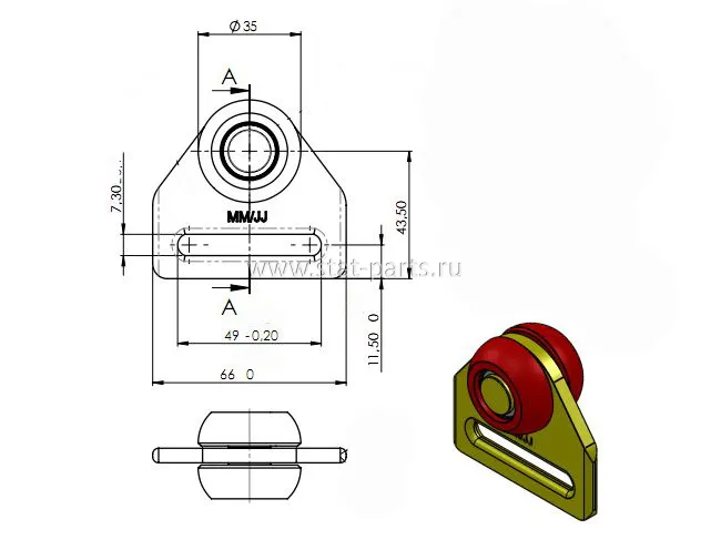 - Размер ролика: диаметр – 35 мм, ширина ролика – 11,5 мм, ширина ролика с площадкой – 29 мм;