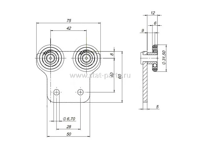 - Размер ролика: диаметр – 31,5 мм, ширина ролика и площадки – 20,5 мм;