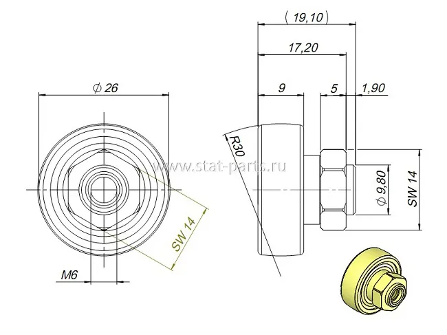 TL0158 РОЛИК СДВИЖНОЙ КРЫШИ СТАЛЬНОЙ SCHMITZ D=26MM 1057719, 1025099, 300-51.169