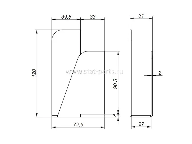 - Длина - 120 мм, глубина - 27 мм, ширина - 72,5 мм;