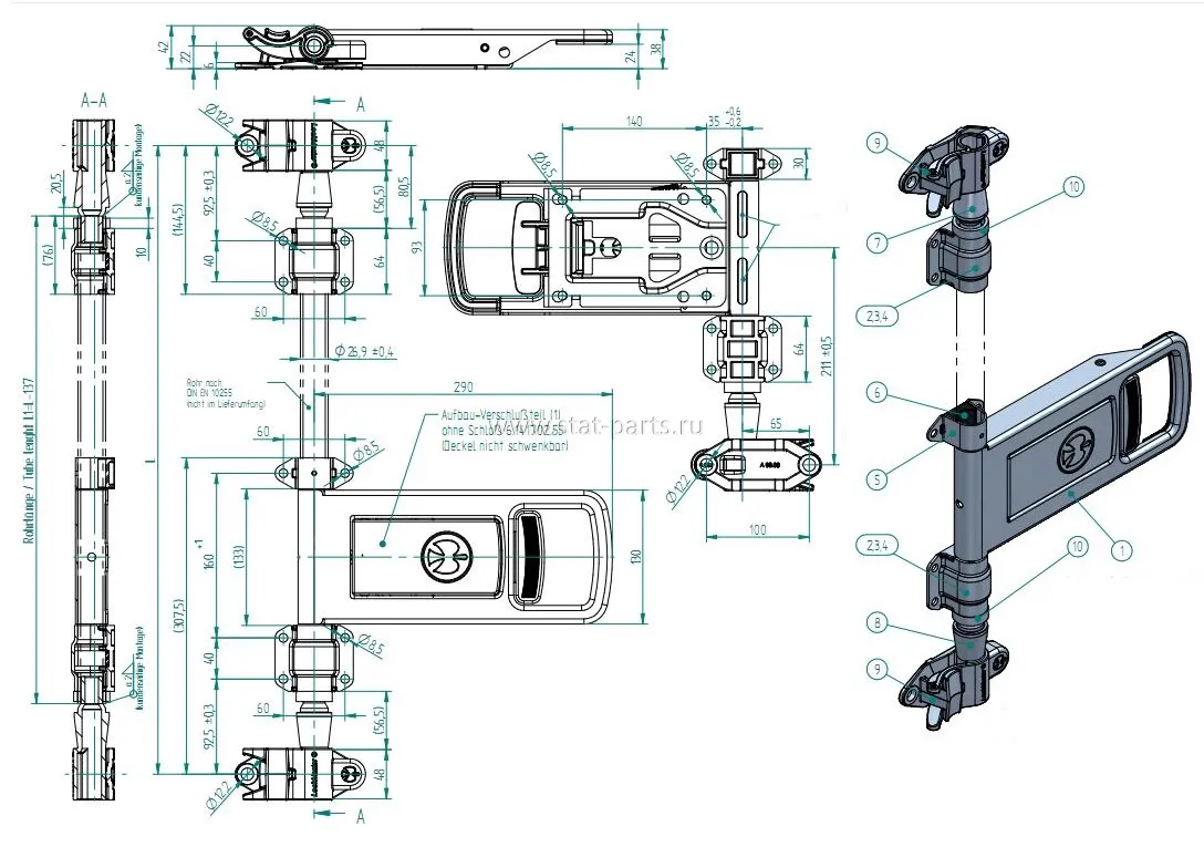 9500001019 КОМПЛЕКТ ВОРОТНОГО ЗАМКА НАРУЖНИЙ БЕЗ ШТАНГИ 890.27